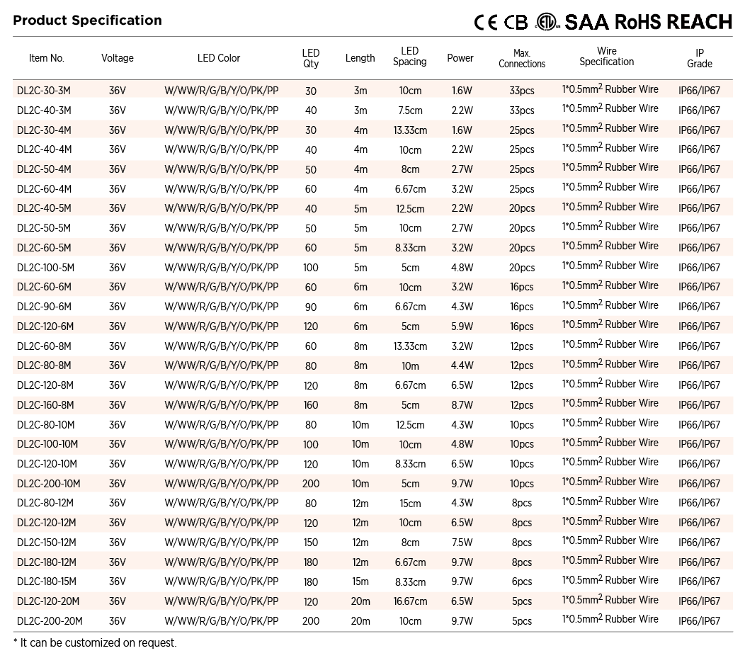 0.5m 2x1.0mm2 rubber wire with dual color controller, without plug / 1.5m 2x1.0mm2 rubber wire with dual color controller and 36V power supply and plug / Customize |