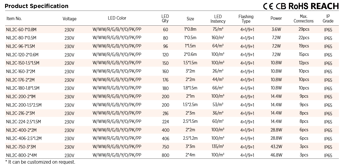 7. We adhere to international authoritative certification standards such as CE, RoHS, and REACH in the production of our LED net lights.